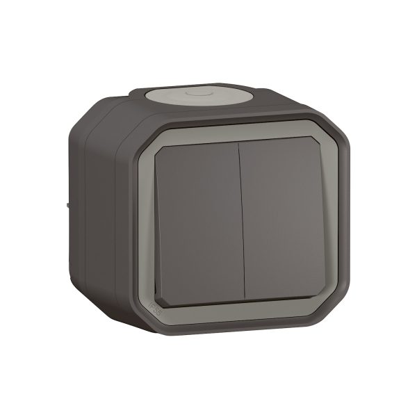 Вимикач 2-кл. зовн. прохідний/кнопка IP55 ” PLEXO ” антрацит (10А)