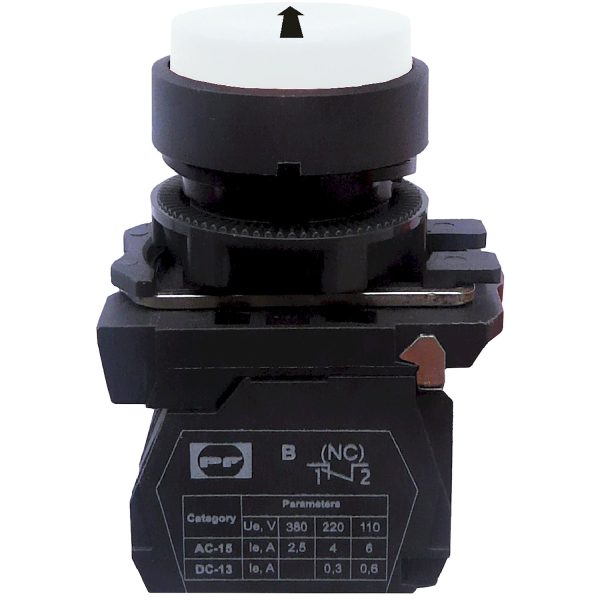 Вимикач кнопковий пластиковий FP5-AL3341 1NO (чорна стрілка вгору, білий)