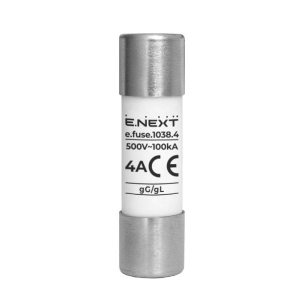 Запобіжник e.fuse.1038.4, типорозмір 10х38, 4А призначений для захисту низьковольтних електричних мереж та обладнання від струмів перевантаження та короткого замикання.