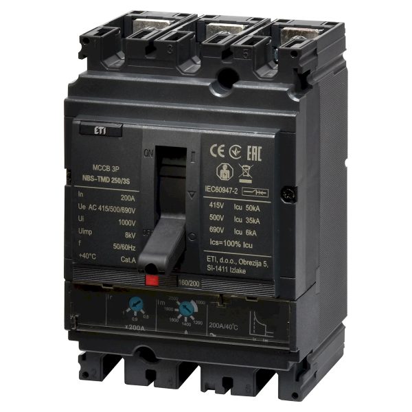 Автомат силовой трехполюсный 200А 50кА NBS-TMD (0.8-1)In/(5-10)In) 250/3S «ЕТІ»