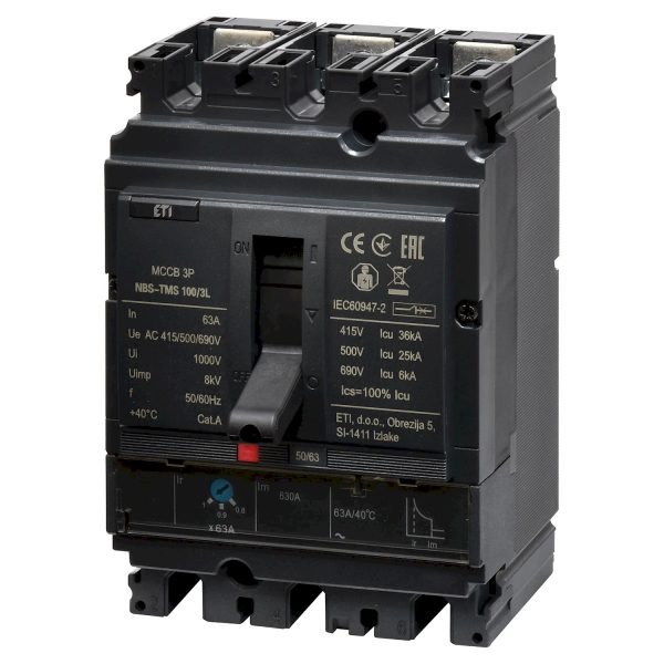 Автоматический силовой выключатель 3-полюсный 63А 36кА NBS-TMS (0.8-1)In/фикс.) 100/3L «ЕТІ»