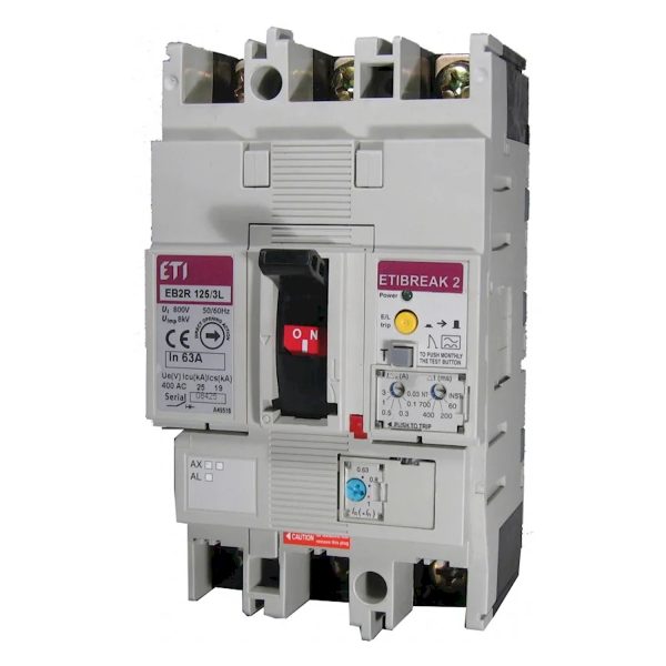 Автоматический силовой выключатель 4-полюсный 125А 25кА EB2R-M 125/4L (0.63-1)In/(10)In, с блоком УЗО «ЕТІ»