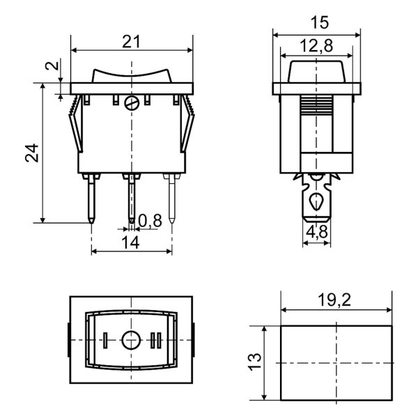 KCD1-2-103 Ч/Б Переключатель 1 клавишный перекидной (черный)