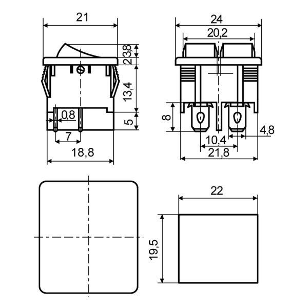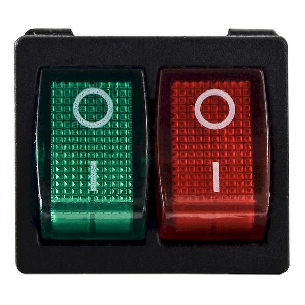 KCD1-6-2101N GR+R/B 220V Переключатель 2 клавишный зеленый+красный с подсветкой