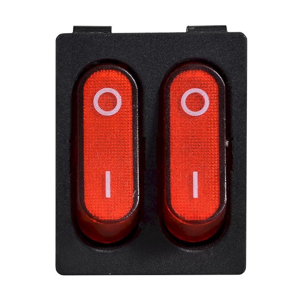 KCD2-5-2101N R/B 220V Переключатель 2 клавишный красный с подсветкой