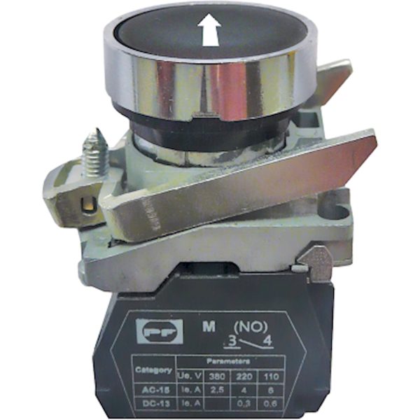 Кнопка металлическая FP4-BA3351 1НО (белая стрелка вверх, черный)