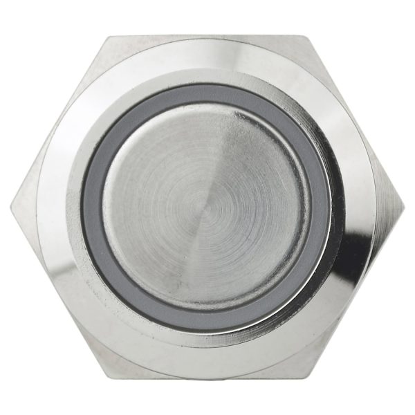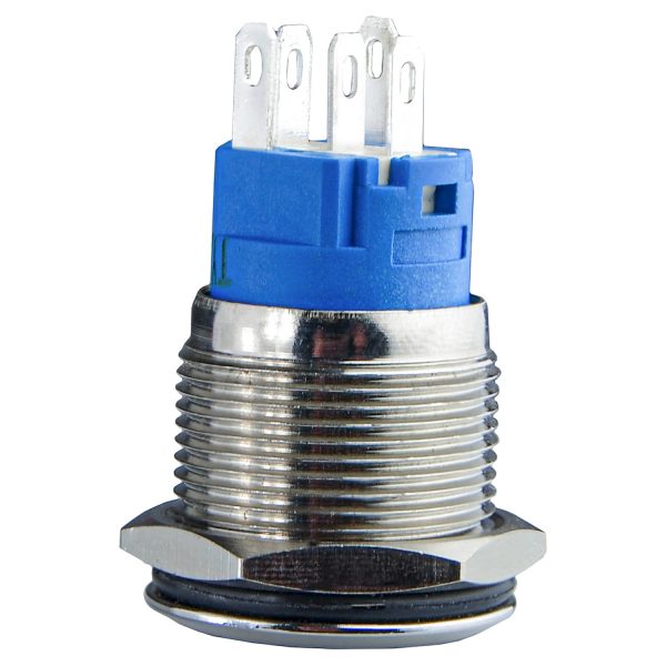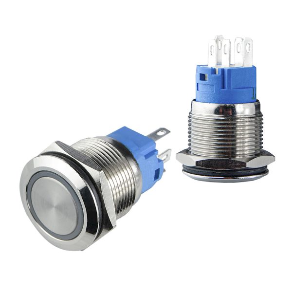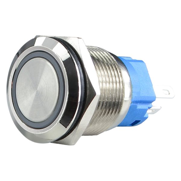 Кнопка металлическая плоская с фиксацией 1НО+1НЗ, с подсветкой, зеленая 220V. TYJ 19-371