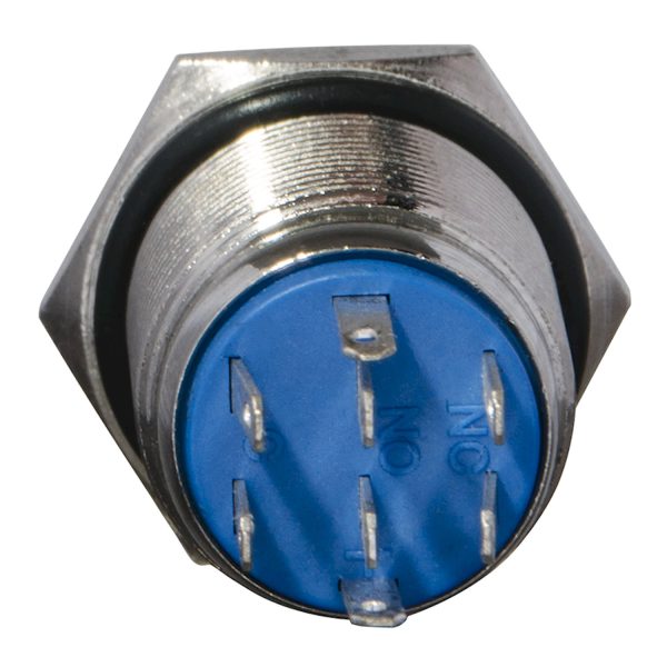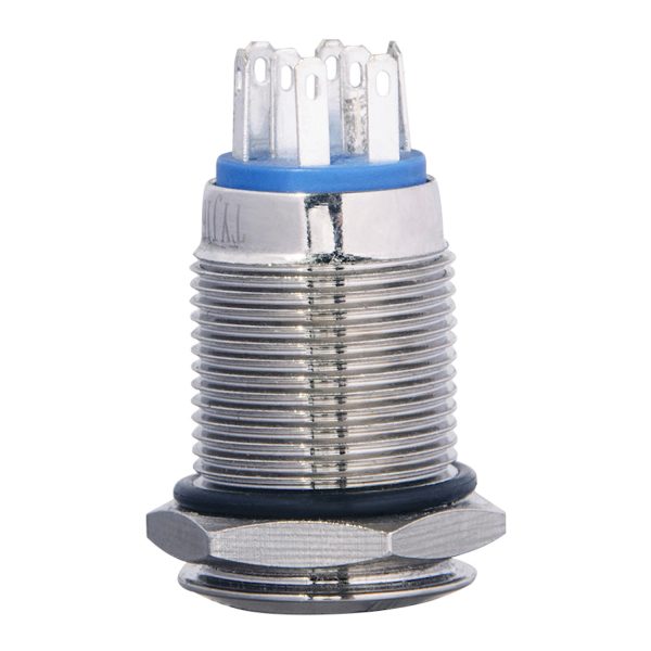 Кнопка металлическая плоская с фиксацией 2НО+2НЗ, с подсветкой, желтая 220V. TYJ 16-362