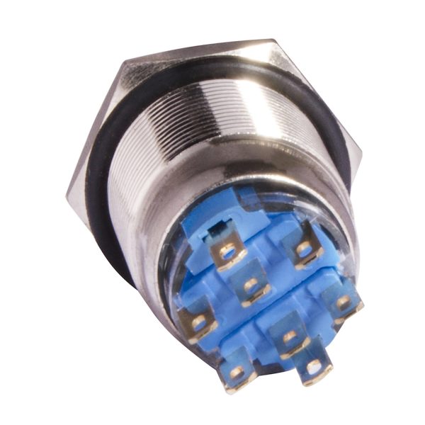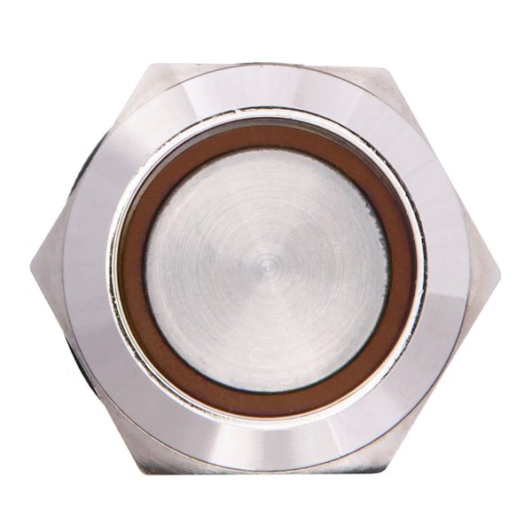 Кнопка металлическая плоская с фиксацией 2НО+2НЗ, с подсветкой, желтая 220V. TYJ 19-372