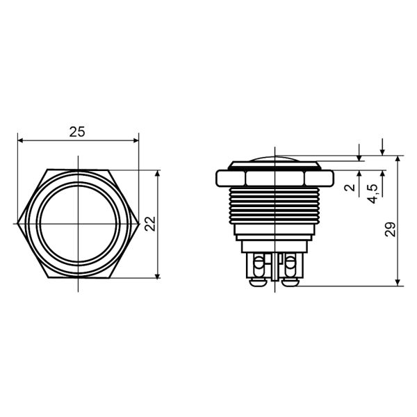 Металлическая куполообразная кнопка, (паяное соединение), 1НО. TY 19-231P Pcb