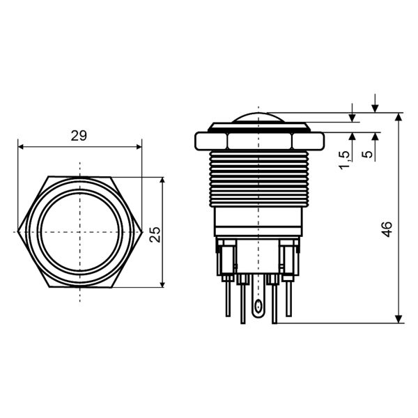 Металлическая куполообразная кнопка с фиксацией, 1НО+1НЗ. TYJ 22-331