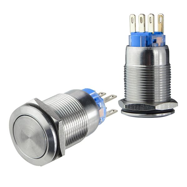 Металлическая плоская кнопка с фиксацией, 2НО+2НЗ. TYJ 19-312