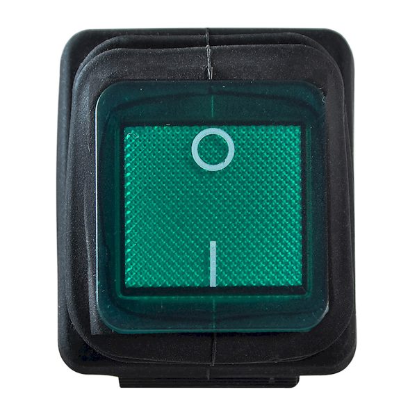 Переключатель 1-клавишный зеленый с подсветкой и защитой KCD2-201WN GR/B