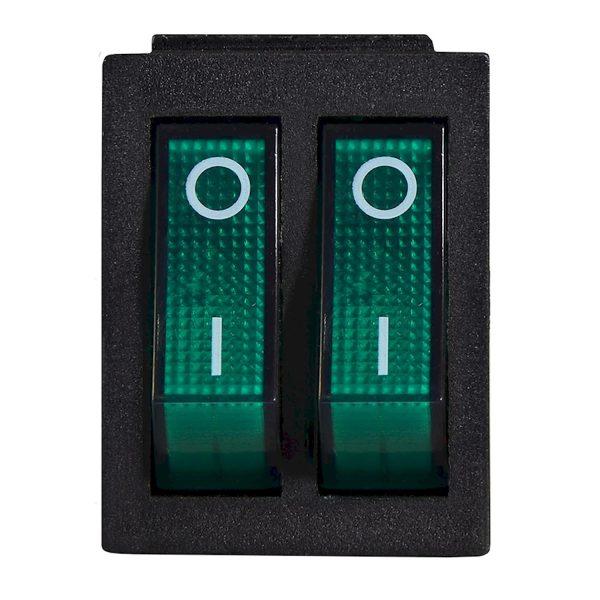 Переключатель KCD2-2101N C3-GR/B 220В, 2-клавишный, зеленый с подсветкой