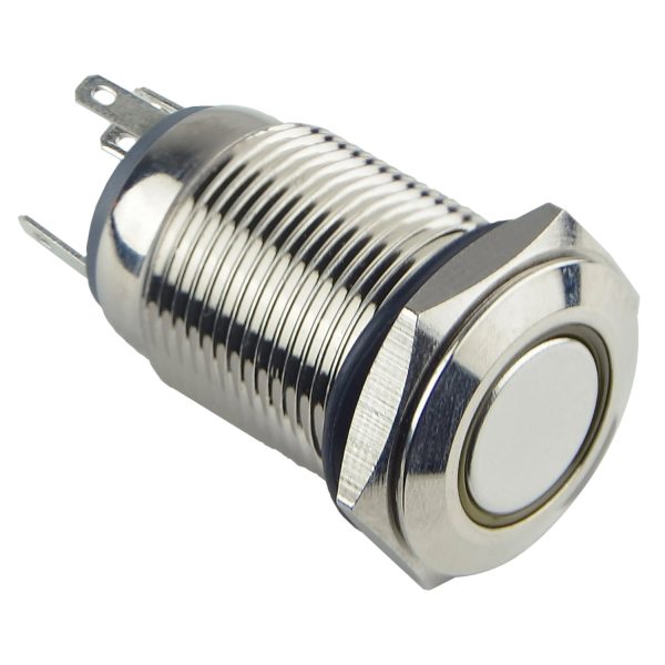 Плоская металлическая кнопка с подсветкой, 1НО+1НЗ, желтая 220V. TYJ 16-261