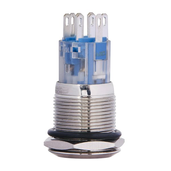 Плоская металлическая кнопка с подсветкой, 2НО+2НЗ, желтая 220V. TYJ 19-272