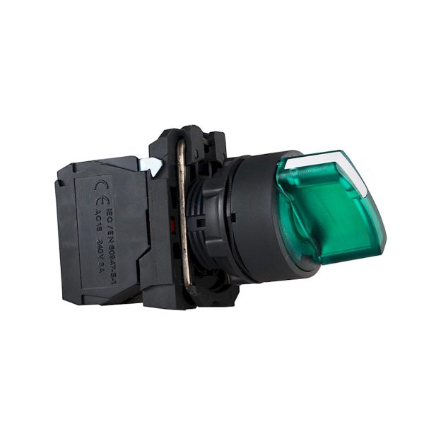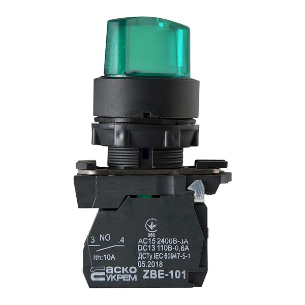 Поворотная кнопка 2-х позиционная с подсветкой зеленая TB5-AK123M5