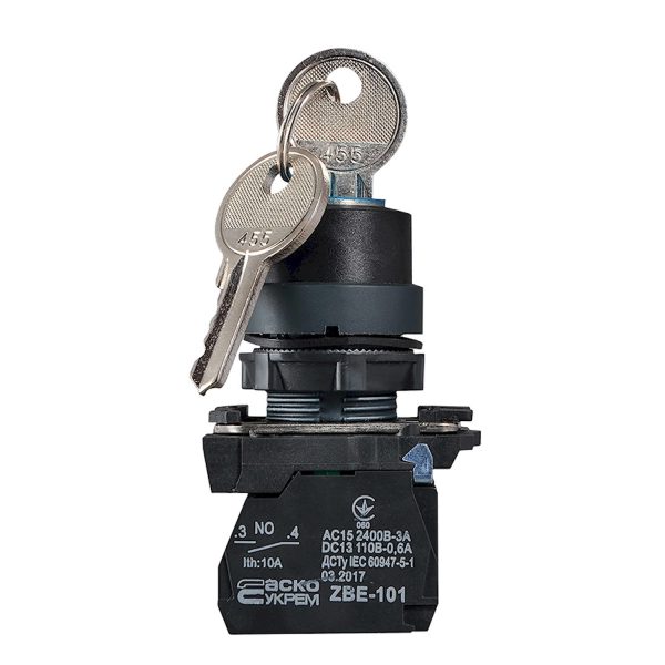 Поворотная кнопка 3-х поз. с ключом черная TB5-AG33