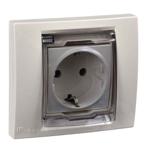 Розетка 1-а З/К внутр. с прозр. крышкой и шторками 2-мод. IP44 «UNICA» сл.к. (C3)