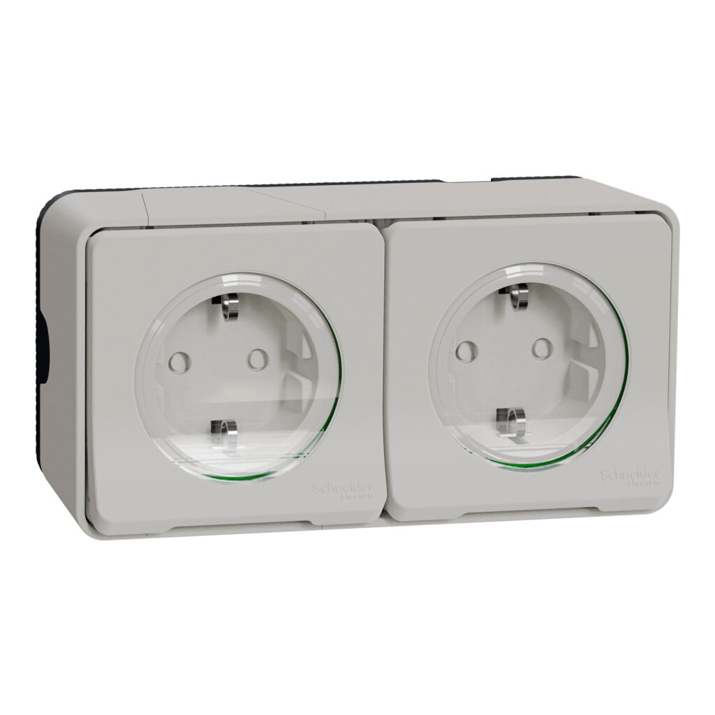 Розетка 1-а З/К внутр. с прозр. крышкой и шторками 2-мод. IP44 «UNICA» сл.к. (C3) «снята с пр-ва»