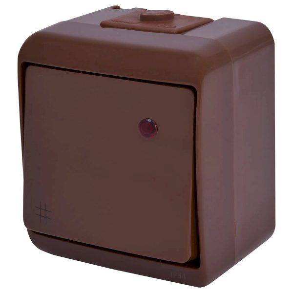 Выключатель 1-клавишный наружный перекрестный IP54 с подсветкой VHE-6L-KR коричневый