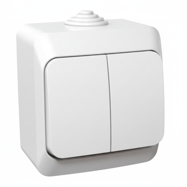 Выключатель 2-клавишный наружный IP44 «Рондо» белый (C3)
