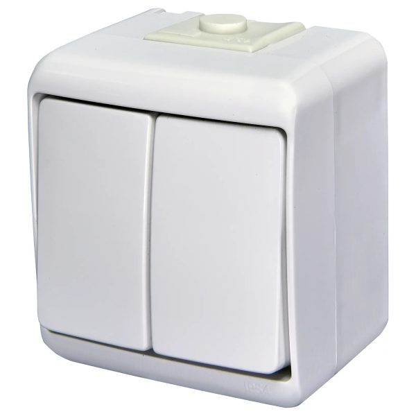 Выключатель 2-клавишный наружный с подсветкой IP54 VHE-2L белый