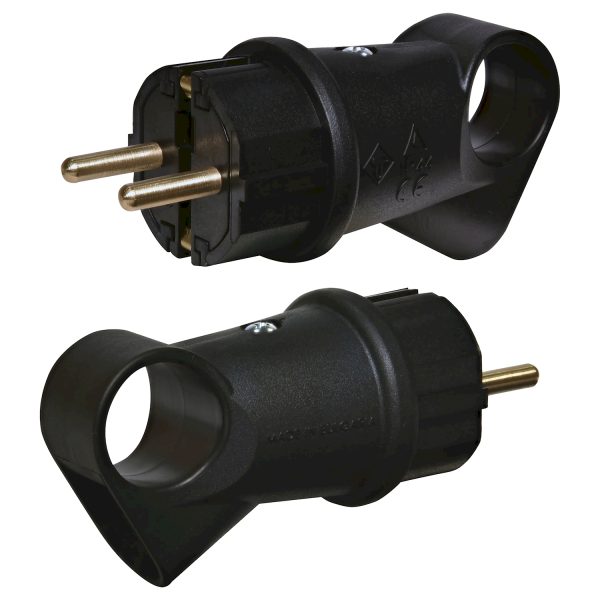 Вилка прямая с кольцом PKB-AN (2Р+РЕ, каучук, IP44, черная «ЕТІ»)