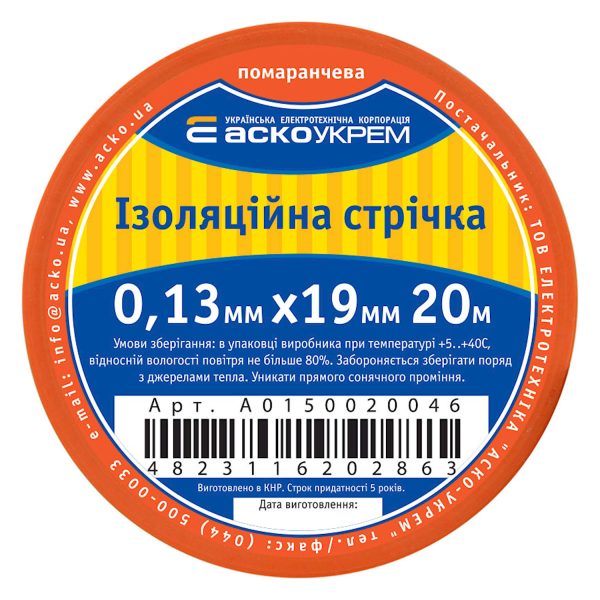 Изолента ПВХ 0,13х19х20м (оранжевая) АСКО