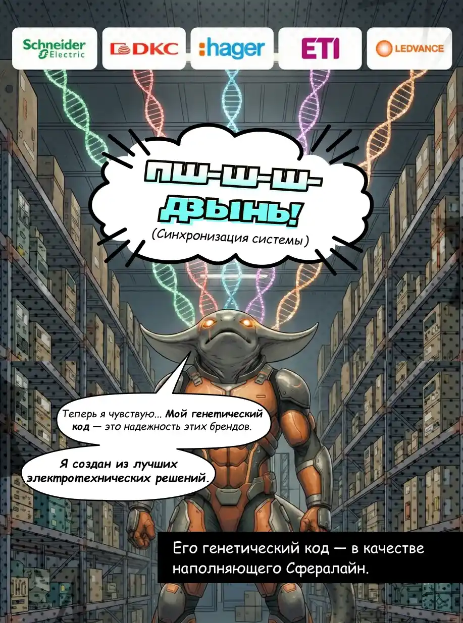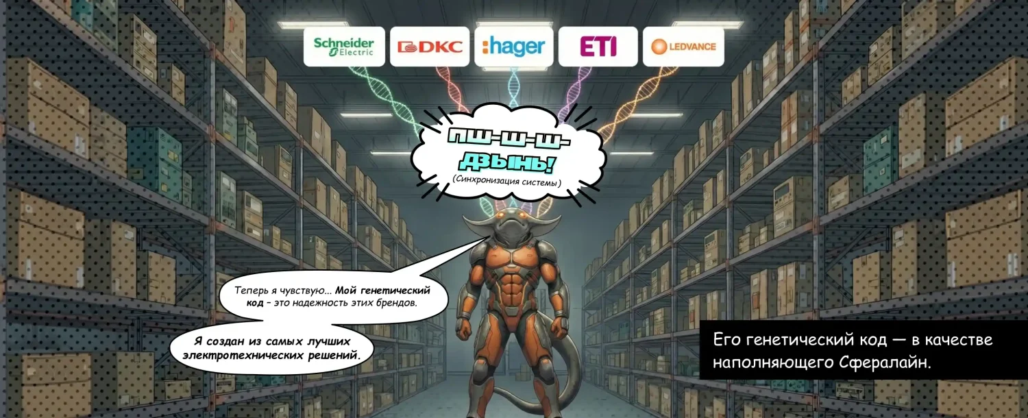Это была точка сборки — момент, когда вся имеющаяся на складе электротехническая продукция мгновенно откликнулась на его внутренний запрос.