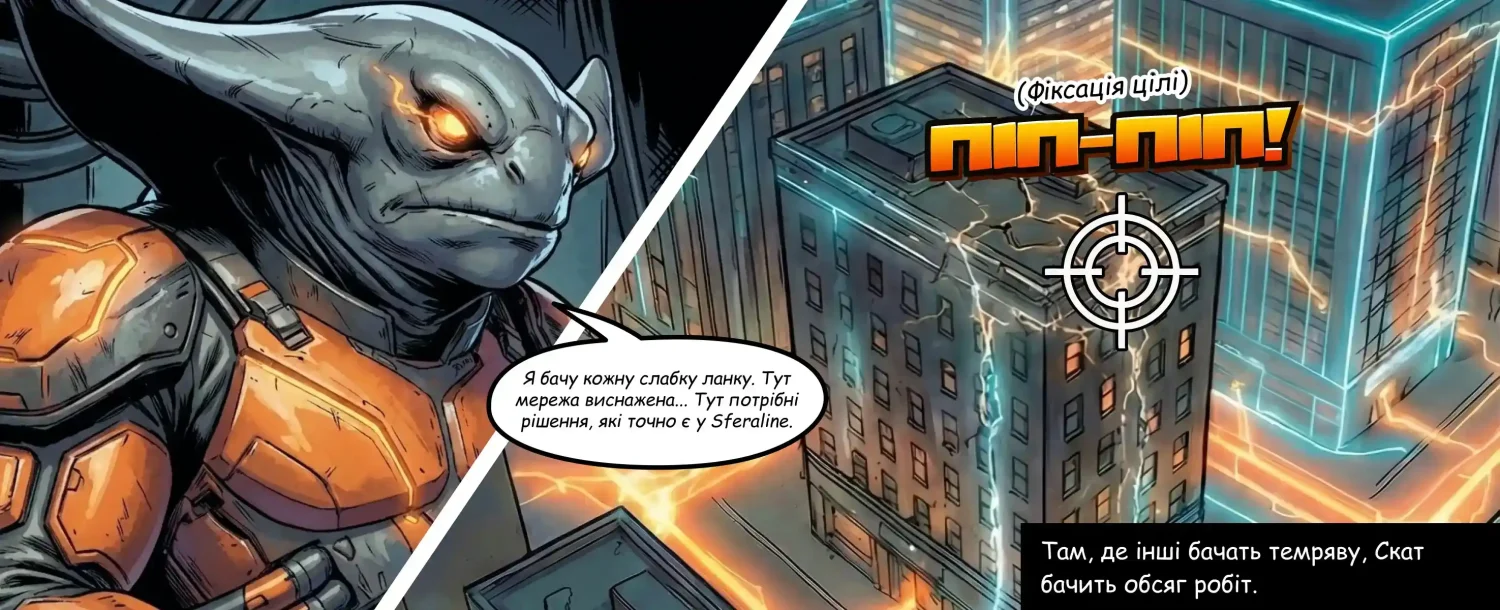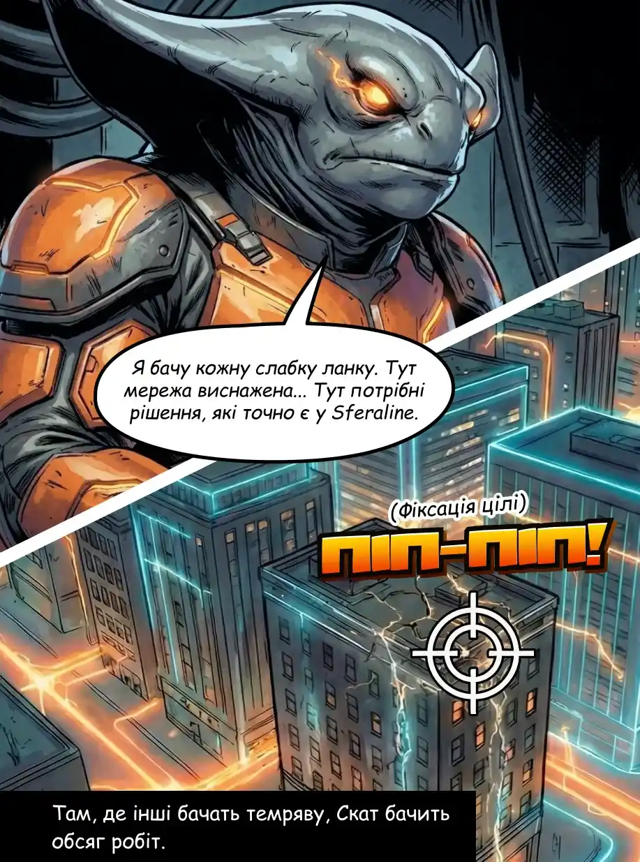 «Місто виглядає міцним, але воно вразливе, — зрозумів Скат, фокусуючи зір на черговому тьмяному вузлі. — Люди не бачать цих сірих плям, поки не зникає світло. Але я бачу. І я знаю, як повернути сюди яскравість».