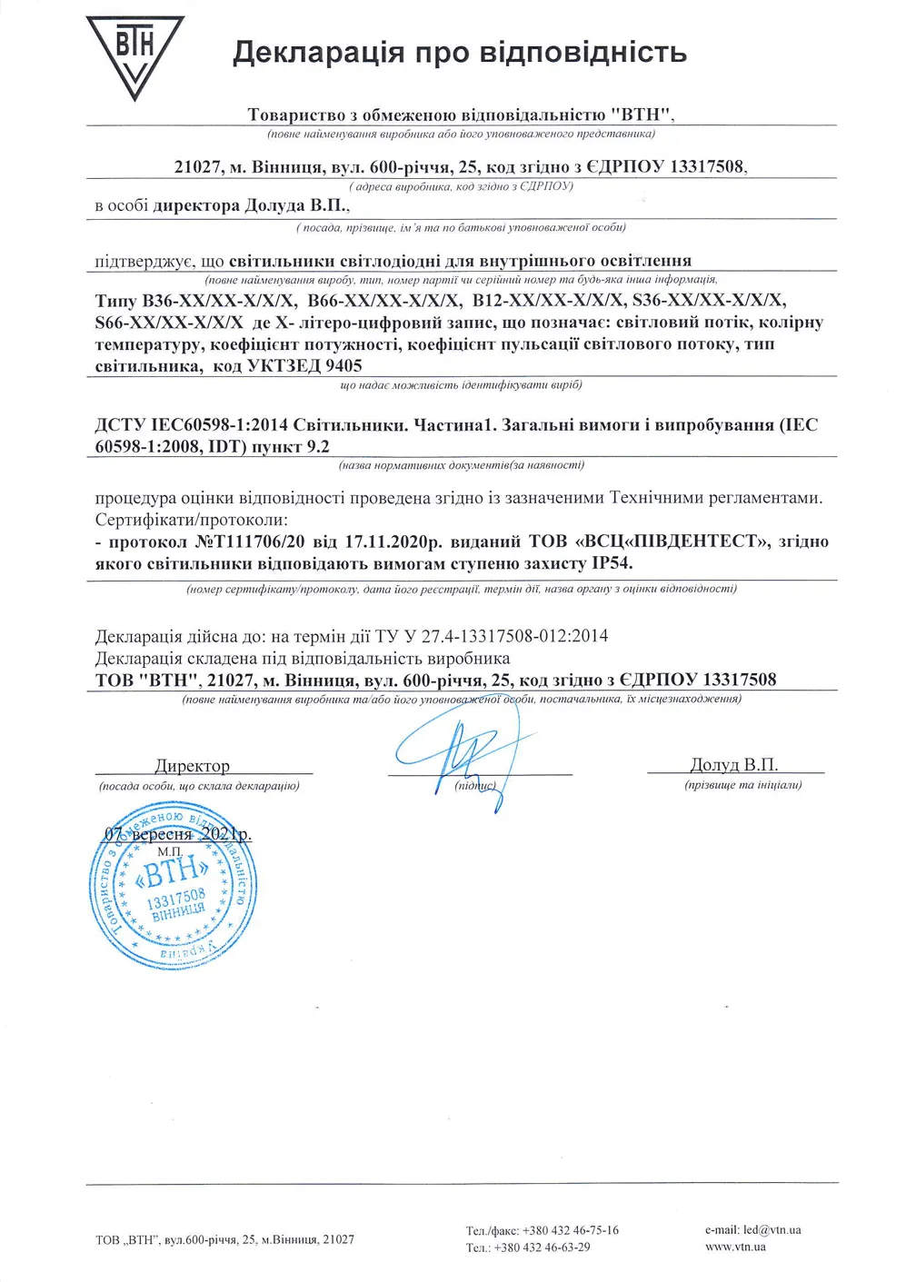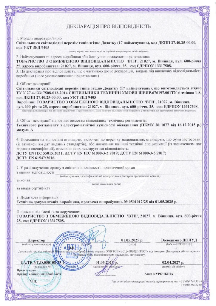 Місія ВТН — створювати надійну електроніку й світлодіодні світильники, які повністю відповідають заявленим технічним параметрам і вимогам замовника.