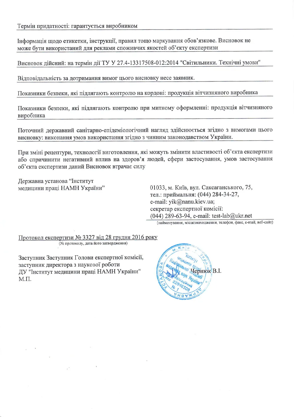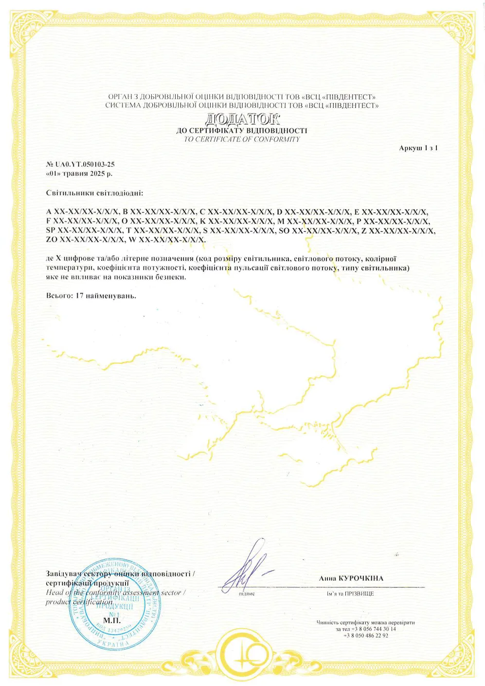 - 2015–2017 — старт експорту LED-світильників (перші постачання до Франції), активне розширення асортименту для стель Армстронг 600×600 мм, запуск серій захищених (IP54) та антивандальних світильників для ЖКГ;